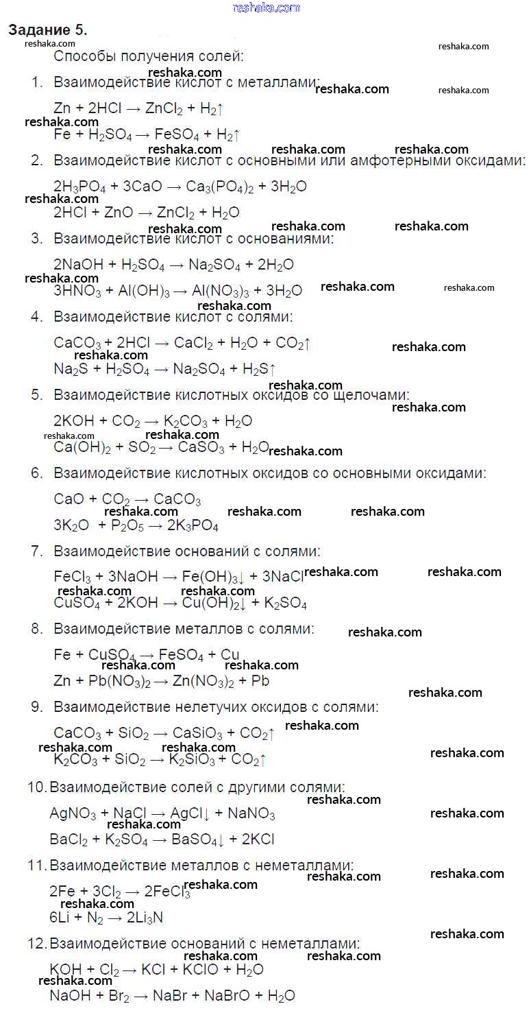 старое издание / задание / глава V. обобщение сведений о важнейших классах неорганических соединений / § 33 / 5