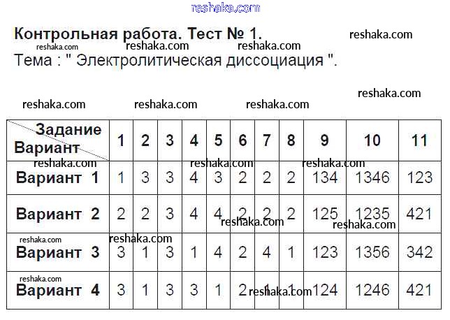 Решака - онлайн ответы Химия Боровских за 9 класс Тесты ФГОС 2013 - КР-1. Электролитическая диссоциация