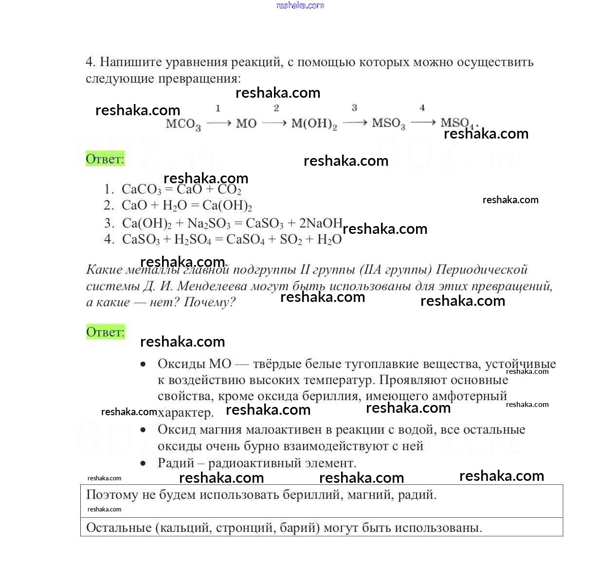 Представляем вам сборники по Химии, с готовыми ответами к Учебнику Габриелян школьной программы для учеников девятый класса. Это не просто гдз с ответом, а с подсказками, как верно решить §15. Бериллий, магний и щёлочноземельные металлы 4. Проверяй домашку с умом и получай высший балл!