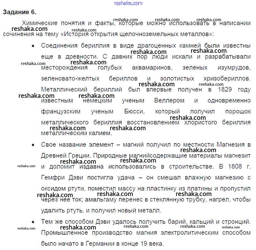Представляем вам сборники по Химии, с готовыми ответами к Учебнику Габриелян школьной программы для учеников девятый класса. Это не просто гдз с ответом, а с подсказками, как верно решить §15. Бериллий, магний и щёлочноземельные металлы 6. Проверяй домашку с умом и получай высший балл!