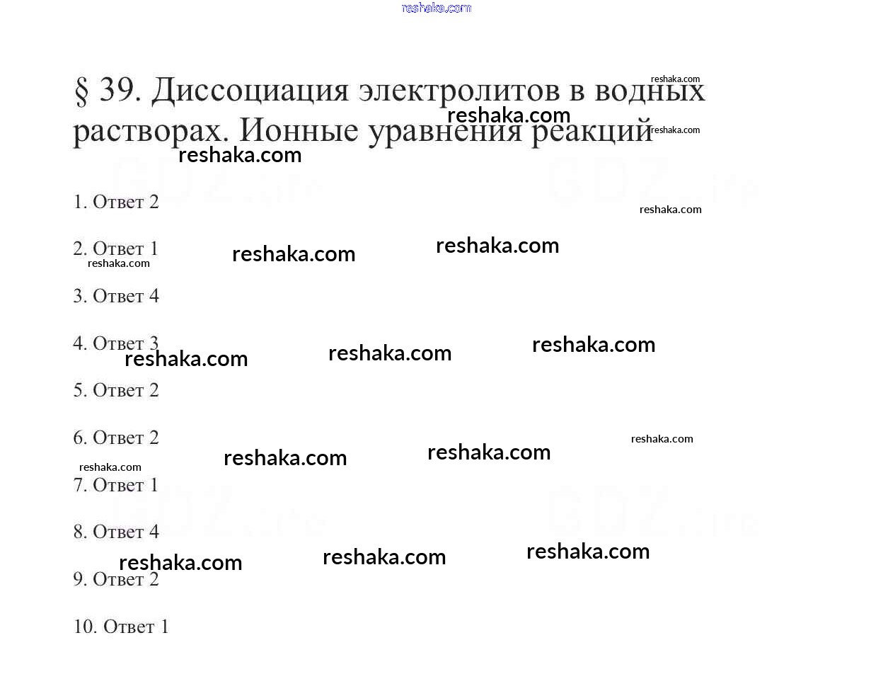 Представляем вам сборники по Химии, с готовыми ответами к Учебнику Габриелян школьной программы для учеников девятый класса. Это не просто гдз с ответом, а с подсказками, как верно решить §39. Диссоциация электролитов в водных растворах. Ионные уравнения реакций 1. Проверяй домашку с умом и получай высший балл!