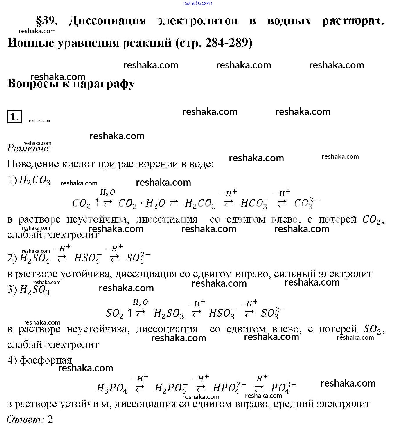 Решака - онлайн ответы Химия Габриелян за 9 класс Учебник ФГОС 2014 - 1