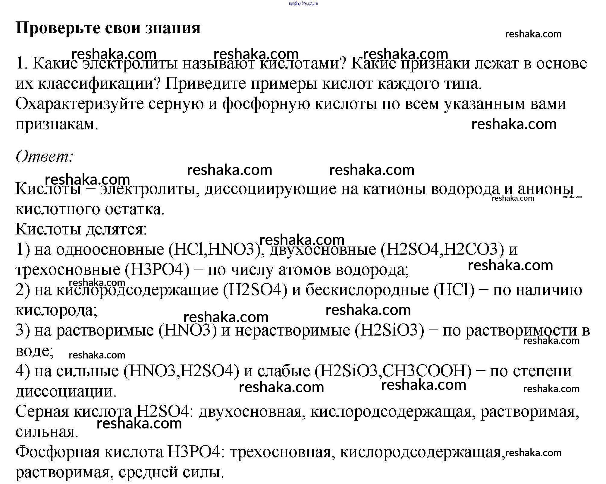 Представляем вам сборники по Химии, с готовыми ответами к Учебнику Габриелян школьной программы для учеников девятый класса. Это не просто гдз с ответом, а с подсказками, как верно решить §6. Химические свойства кислот как электролитов 1. Проверяй домашку с умом и получай высший балл!