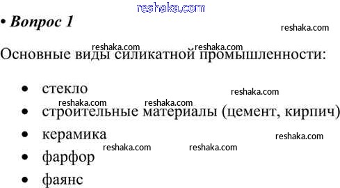 Представляем вам сборники по Химии, с готовыми ответами к Учебнику Габриелян школьной программы для учеников девятый класса. Это не просто гдз с ответом, а с подсказками, как верно решить §25. Силикатная промышленность 1. Проверяй домашку с умом и получай высший балл!