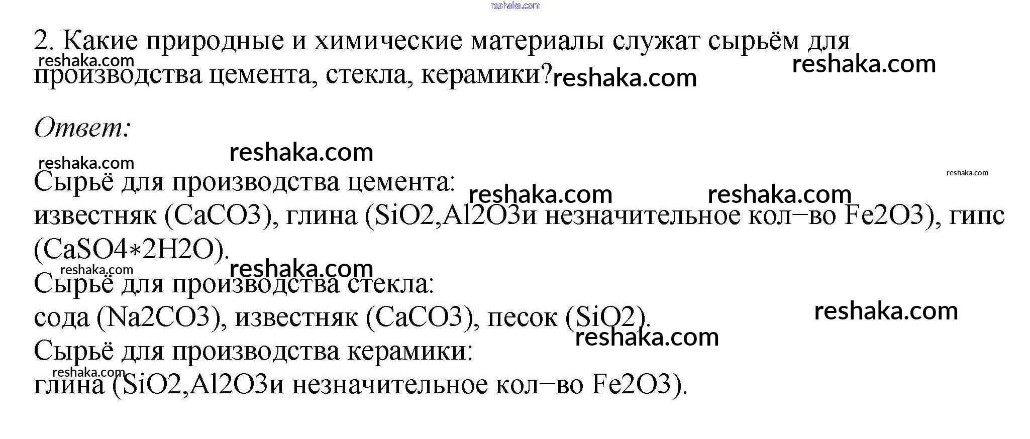 Представляем вам сборники по Химии, с готовыми ответами к Учебнику Габриелян школьной программы для учеников девятый класса. Это не просто гдз с ответом, а с подсказками, как верно решить §25. Силикатная промышленность 2. Проверяй домашку с умом и получай высший балл!