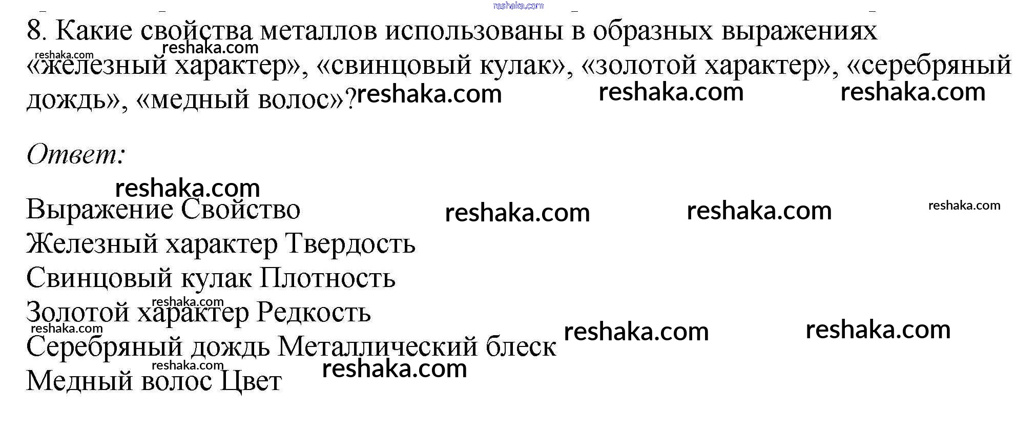 Представляем вам сборники по Химии, с готовыми ответами к Учебнику Габриелян школьной программы для учеников девятый класса. Это не просто гдз с ответом, а с подсказками, как верно решить §28. Общая характеристика металлов 8. Проверяй домашку с умом и получай высший балл!