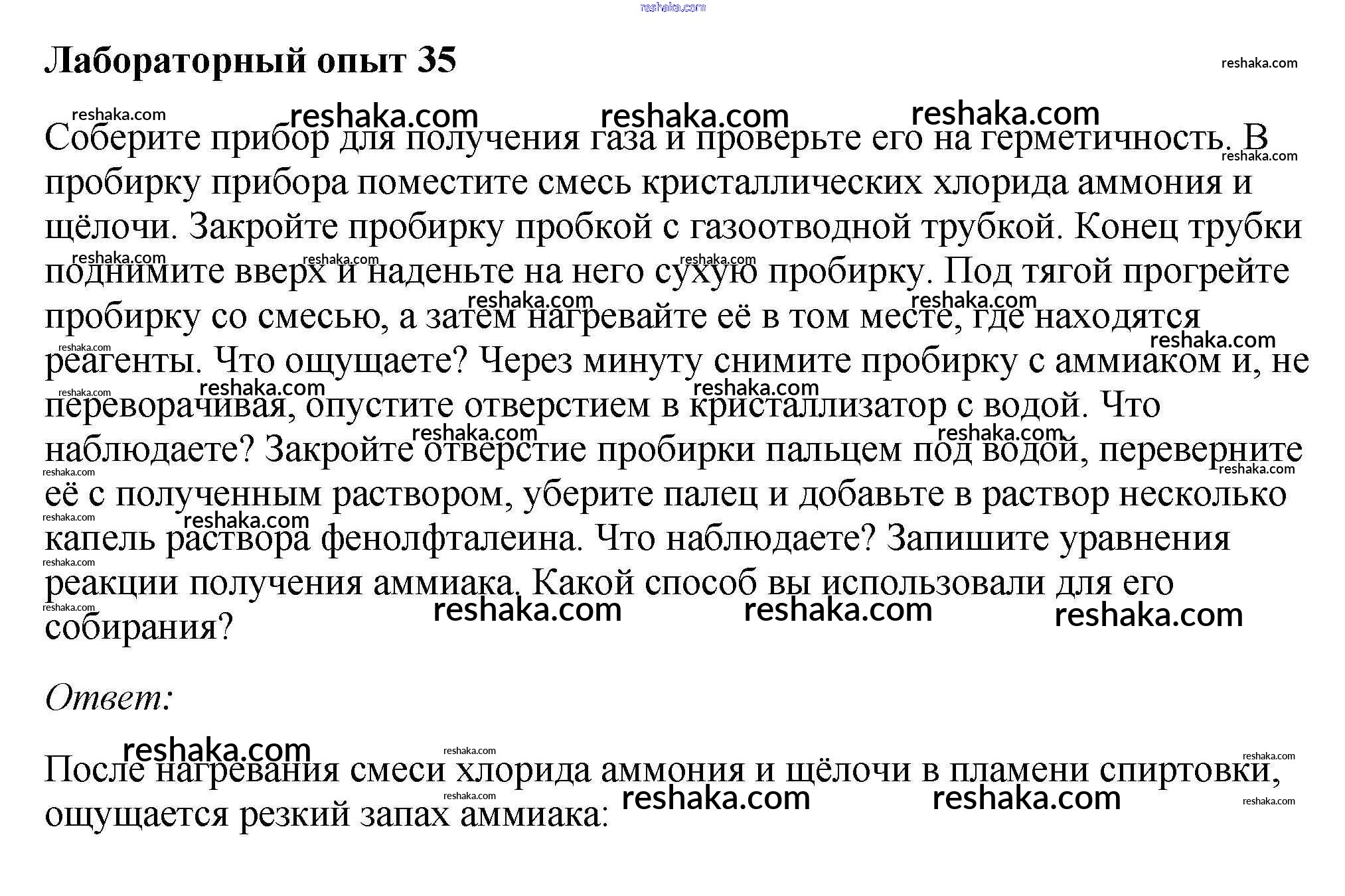 Представляем вам сборники по Химии, с готовыми ответами к Учебнику Габриелян школьной программы для учеников девятый класса. Это не просто гдз с ответом, а с подсказками, как верно решить Лабораторные опыты 35. Проверяй домашку с умом и получай высший балл!