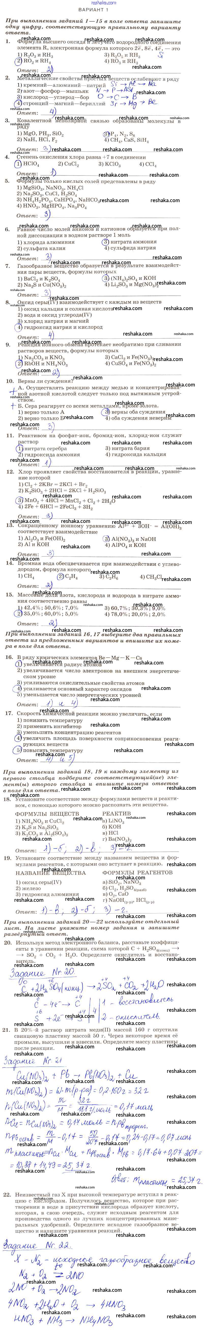 Решака - онлайн ответы Химия Габриелян, Березкин за 9 класс Контрольные работы ФГОС 2013 - вариант-1