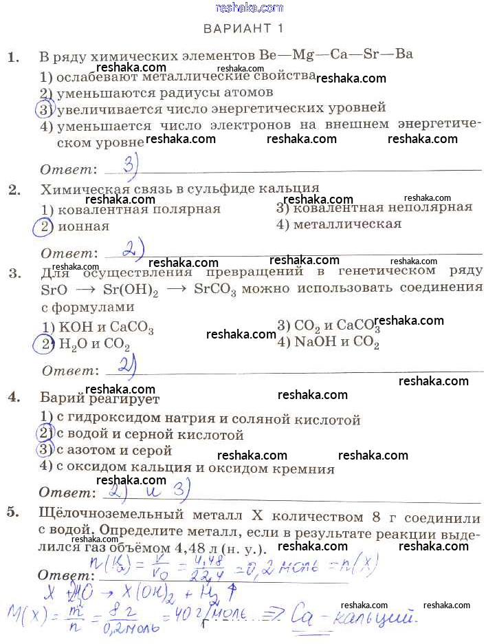 Решака - онлайн ответы Химия Габриелян, Березкин за 9 класс Контрольные работы ФГОС 2013 - вариант-1