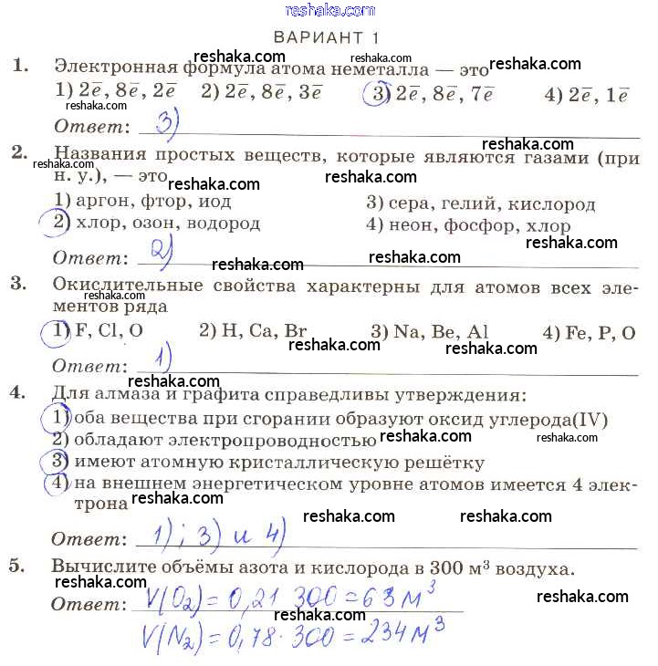 Решака - онлайн ответы Химия Габриелян, Березкин за 9 класс Контрольные работы ФГОС 2013 - вариант-1