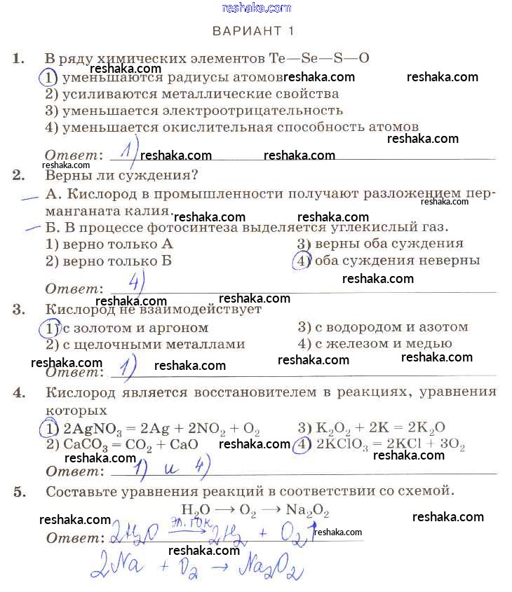 Решака - онлайн ответы Химия Габриелян, Березкин за 9 класс Контрольные работы ФГОС 2013 - вариант-1