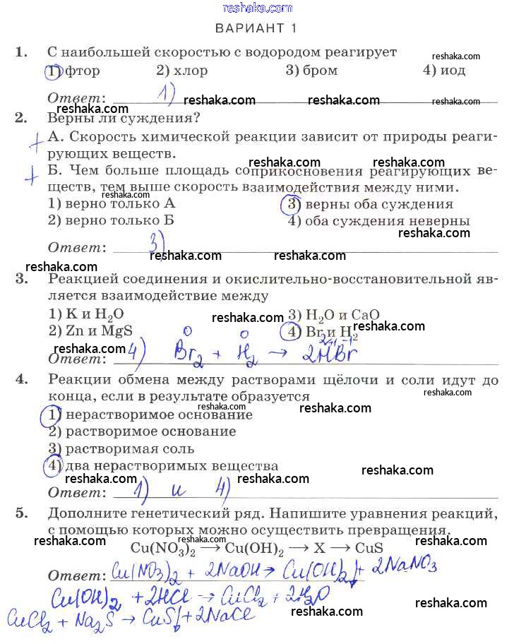 Решака - онлайн ответы Химия Габриелян, Березкин за 9 класс Контрольные работы ФГОС 2013 - вариант-1