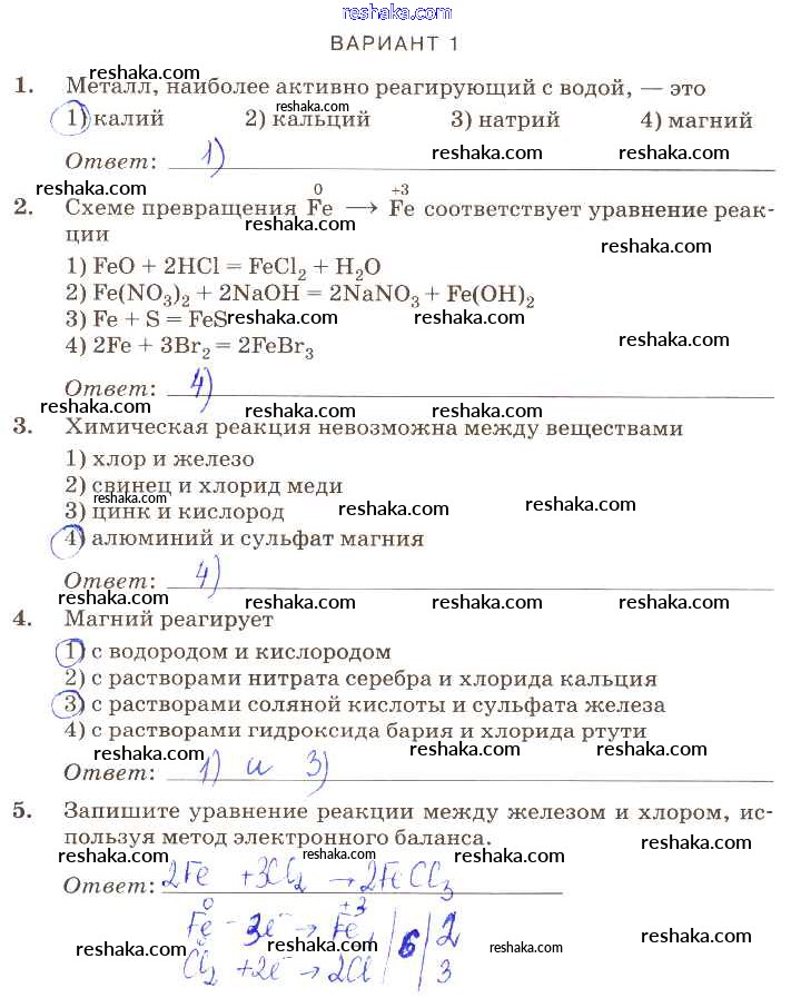 Решака - онлайн ответы Химия Габриелян, Березкин за 9 класс Контрольные работы ФГОС 2013 - вариант-1