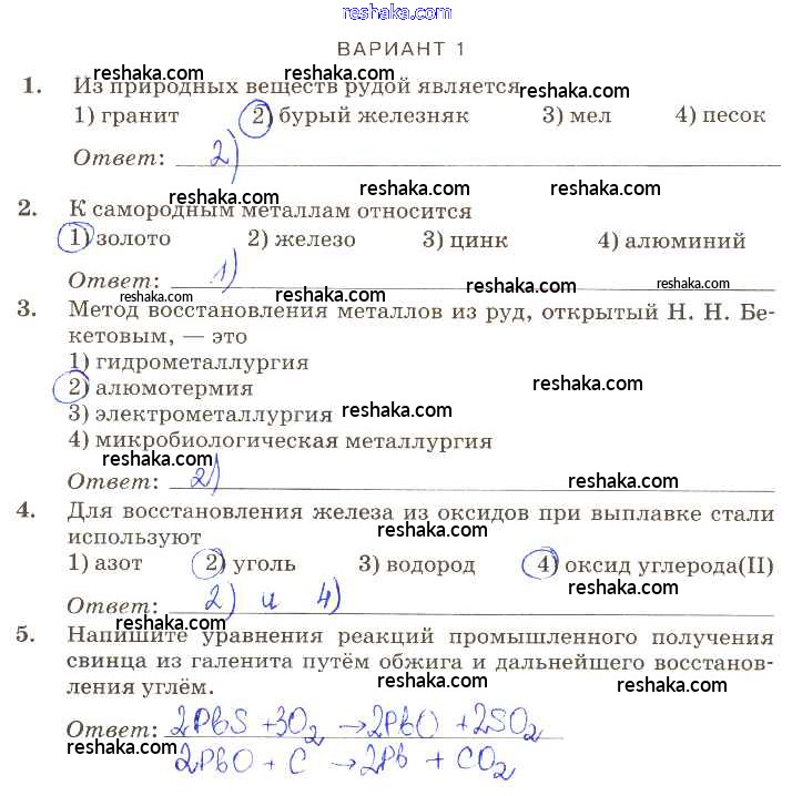 Решака - онлайн ответы Химия Габриелян, Березкин за 9 класс Контрольные работы ФГОС 2013 - вариант-1