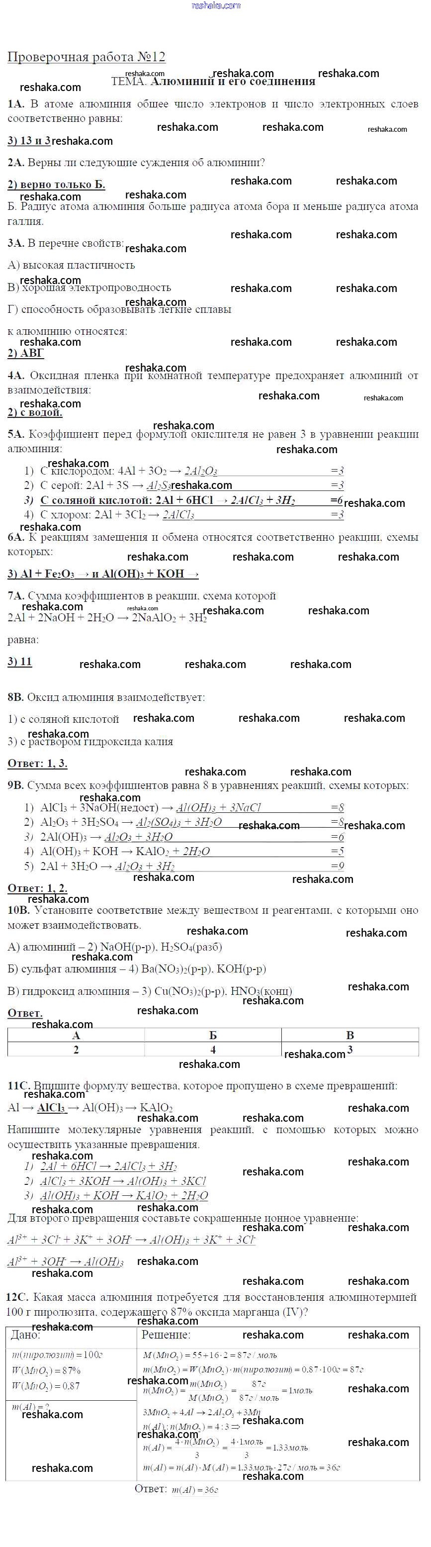 проверочная работа / пр-12. Алюминий и его соединения