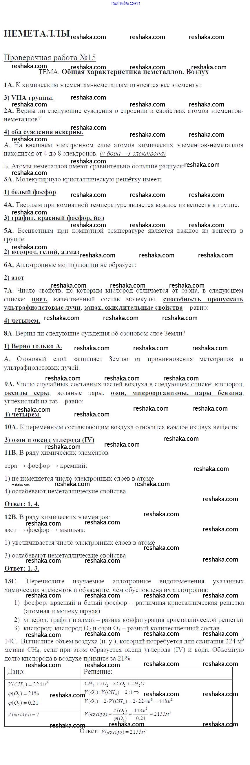 Решака - онлайн ответы Химия Габриелян, Крупцова за 9 класс Тетрадь для оценки качества знаний ФГОС 2017 - ПР-15. Общая характеристика неметаллов. Воздух