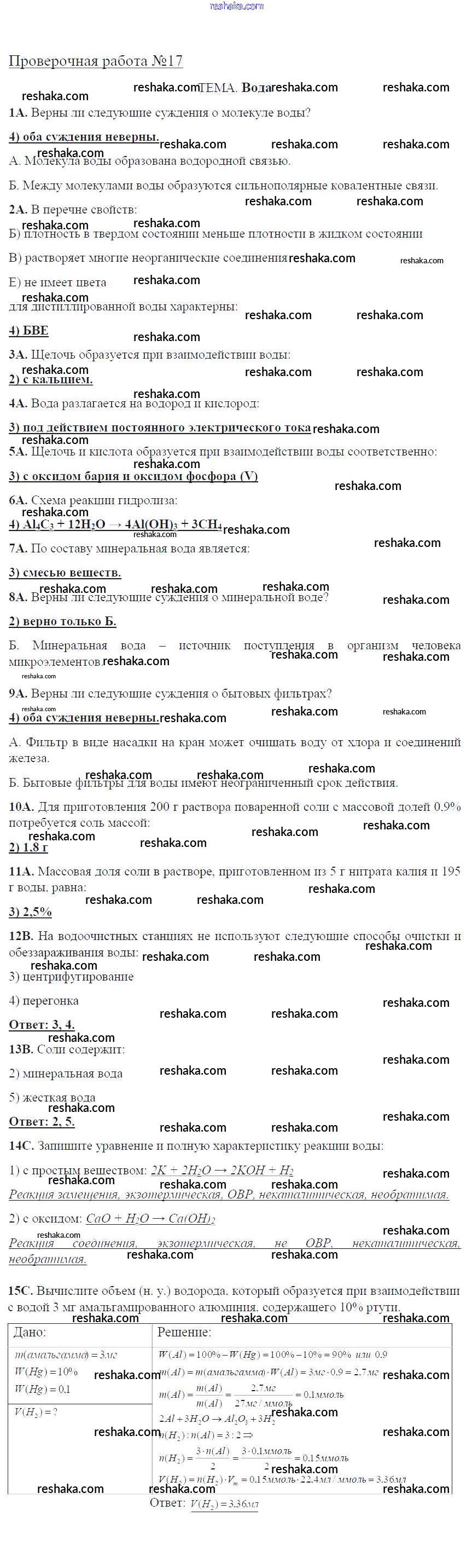 Представляем вам сборники по Химии, с готовыми ответами к Тетради для оценки качества знаний Габриелян школьной программы для учеников девятый класса. Это не просто гдз с ответом, а с подсказками, как верно решить Проверочные работы ПР-17. Вода. Проверяй домашку с умом и получай высший балл!