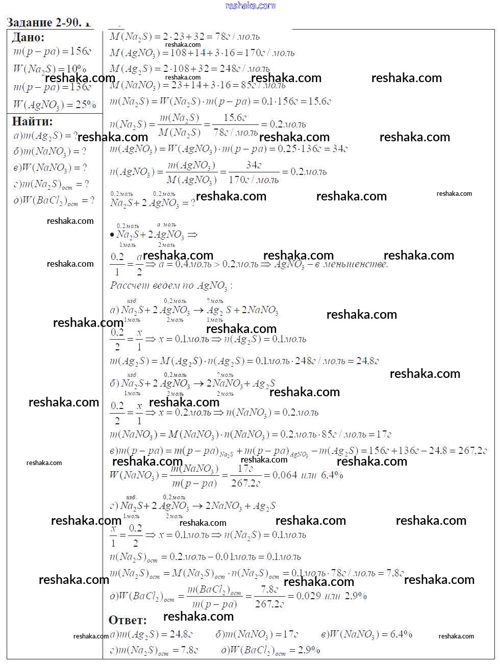 Решака - онлайн ответы Химия Кузнецова, Левкин за 9 класс Задачник ФГОС 2015 - 2-90