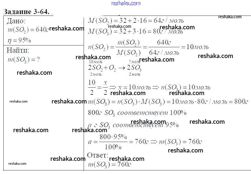 Решака - онлайн ответы Химия Кузнецова, Левкин за 9 класс Задачник ФГОС 2015 - 3-64