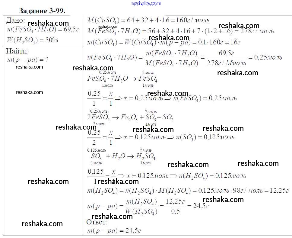 Решака - онлайн ответы Химия Кузнецова, Левкин за 9 класс Задачник ФГОС 2015 - 3-99