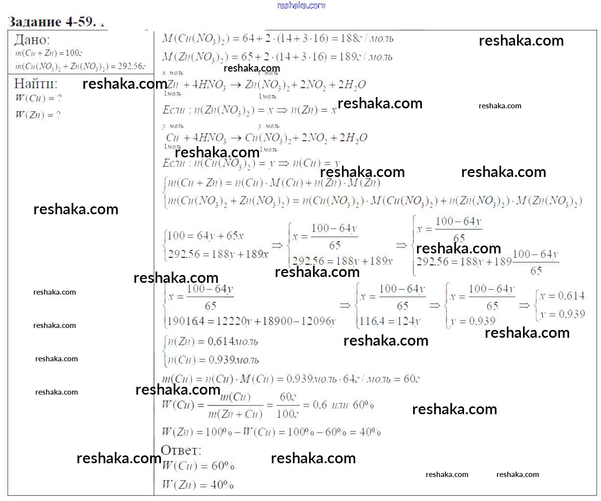 Решака - онлайн ответы Химия Кузнецова, Левкин за 9 класс Задачник ФГОС 2015 - 4-59