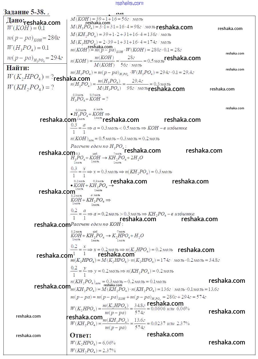 Решака - онлайн ответы Химия Кузнецова, Левкин за 9 класс Задачник ФГОС 2015 - 5-38
