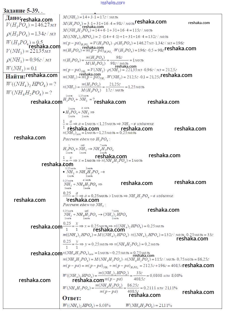Решака - онлайн ответы Химия Кузнецова, Левкин за 9 класс Задачник ФГОС 2015 - 5-39