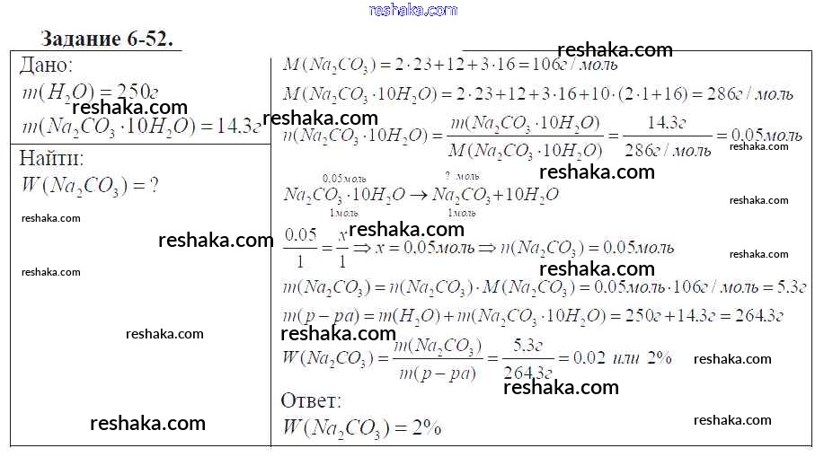 Решака - онлайн ответы Химия Кузнецова, Левкин за 9 класс Задачник ФГОС 2015 - 6-52