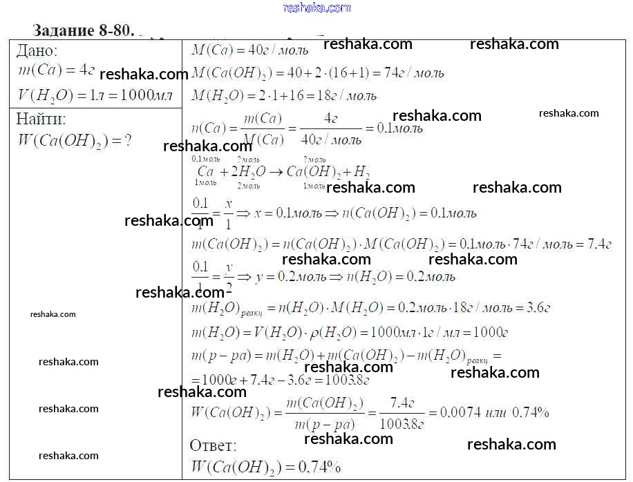 Решака - онлайн ответы Химия Кузнецова, Левкин за 9 класс Задачник ФГОС 2015 - 8-80