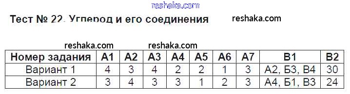 Решака - онлайн ответы Химия Стрельникова за 9 класс Контрольно-измерительные материалы (КИМ) ФГОС 2017 - Тест №22. Углерод и его соединения