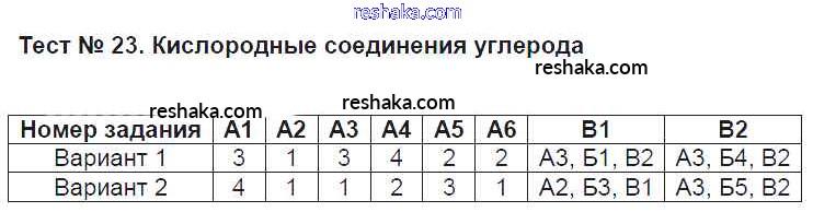Решака - онлайн ответы Химия Стрельникова за 9 класс Контрольно-измерительные материалы (КИМ) ФГОС 2017 - Тест №23. Кислородные соединения углерода