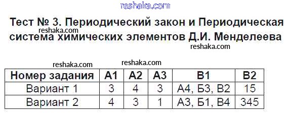 Решака - онлайн ответы Химия Стрельникова за 9 класс Контрольно-измерительные материалы (КИМ) ФГОС 2017 - Тест №3. Периодический закон и Периодическая система химических элементов Д.И. Менделеева