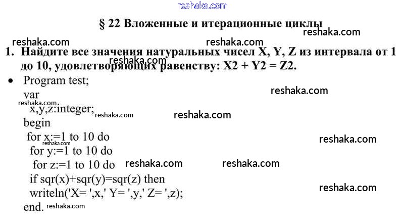 Представляем вам сборники по Информатике, с готовыми ответами к Учебнику Семакин школьной программы для учеников десятый класса. Это не просто гдз с ответом, а с подсказками, как верно решить §22. Вложенные и итерационные циклы 1. Проверяй домашку с умом и получай высший балл!