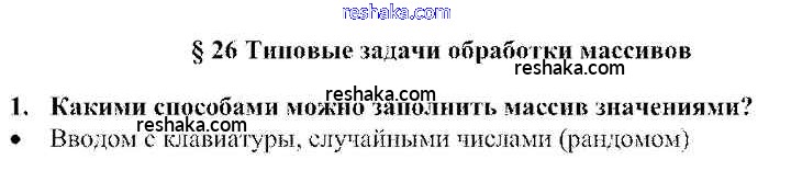 Представляем вам сборники по Информатике, с готовыми ответами к Учебнику Семакин школьной программы для учеников десятый класса. Это не просто гдз с ответом, а с подсказками, как верно решить §26. Типовые задачи обработки массивов 1. Проверяй домашку с умом и получай высший балл!