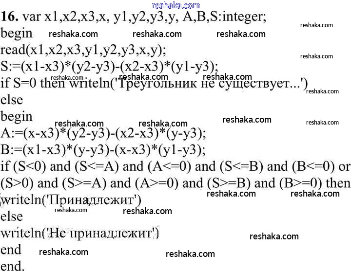 Представляем вам сборники по Информатике, с готовыми ответами к Учебнику Семакин школьной программы для учеников десятый класса. Это не просто гдз с ответом, а с подсказками, как верно решить Задание 1 Работа 3.3. Программирование ветвящихся алгоритмов 16. Проверяй домашку с умом и получай высший балл!