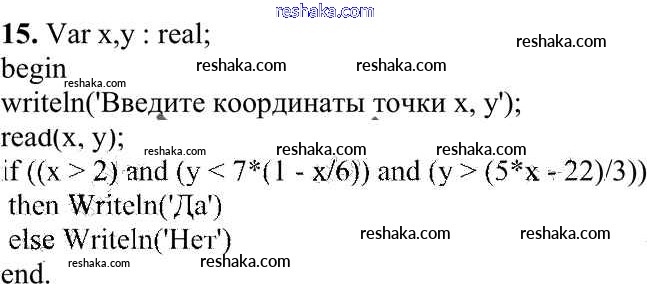 Представляем вам сборники по Информатике, с готовыми ответами к Учебнику Семакин школьной программы для учеников десятый класса. Это не просто гдз с ответом, а с подсказками, как верно решить Задание 2 Работа 3.3. Программирование ветвящихся алгоритмов 15. Проверяй домашку с умом и получай высший балл!