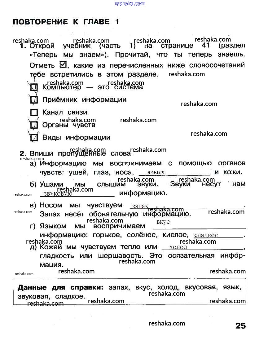 часть 1. страница / повторение к главе 1 / стр. 25