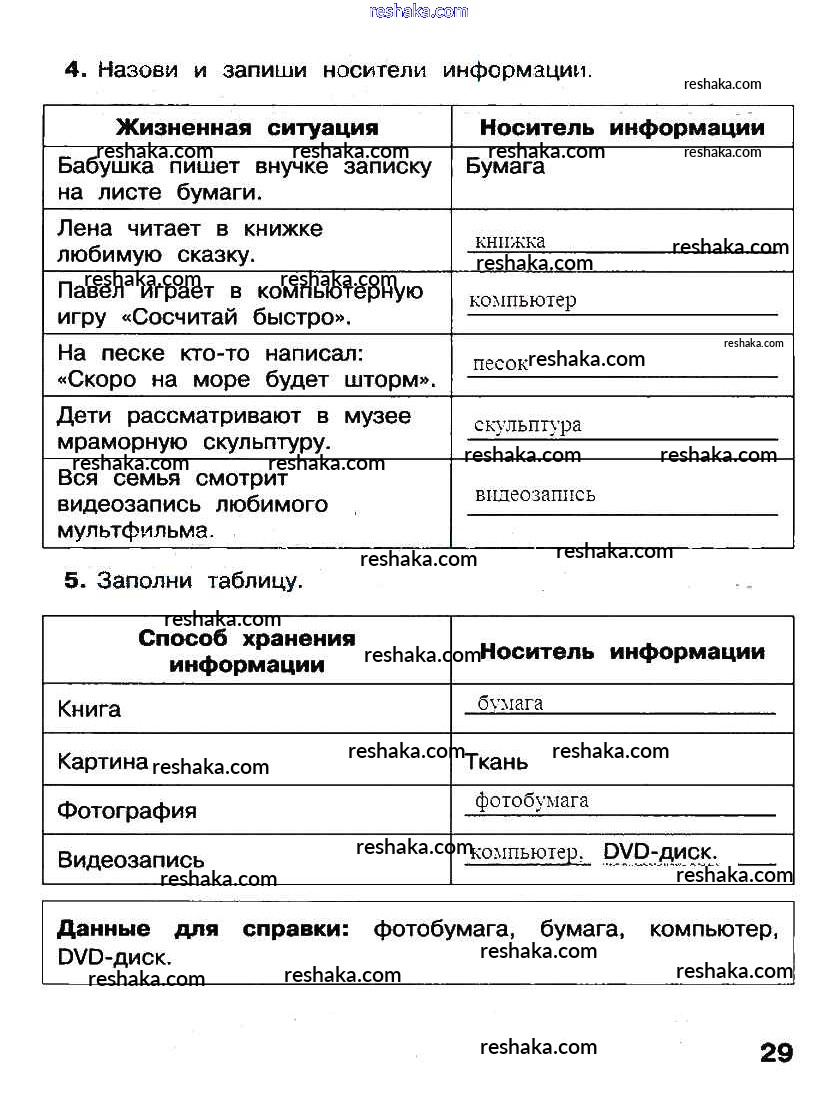 Решака - онлайн ответы Информатика Матвеева, Челак за 2 класс Рабочая тетрадь ФГОС 2012 - стр. 29