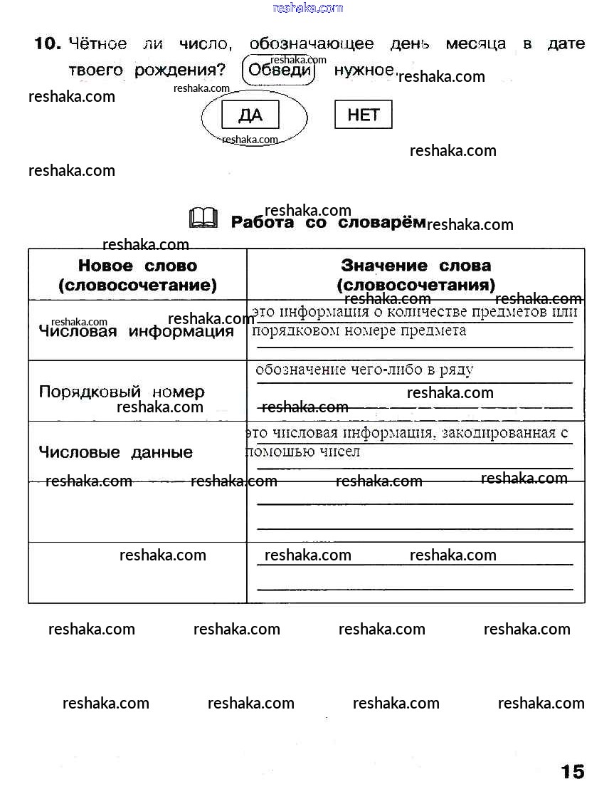 Решака - онлайн ответы Информатика Матвеева, Челак за 2 класс Рабочая тетрадь ФГОС 2012 - стр. 15