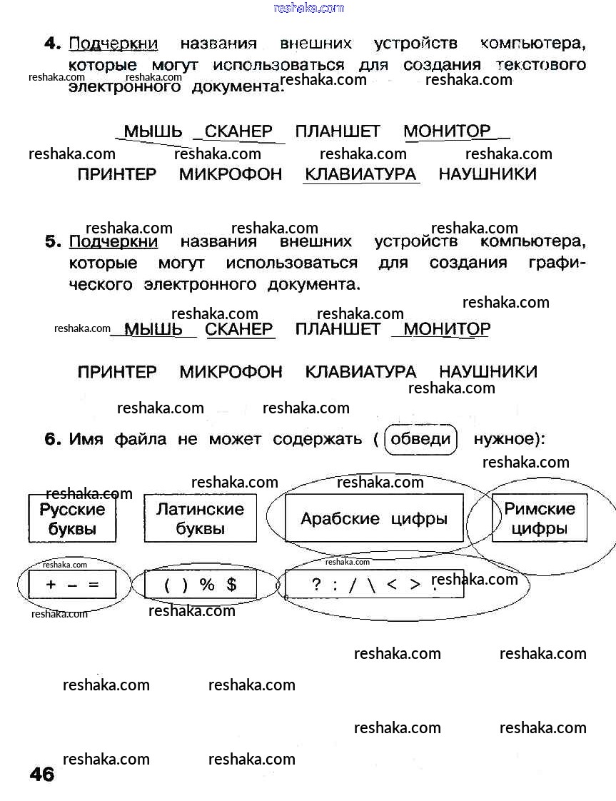 Решака - онлайн ответы Информатика Матвеева, Челак за 2 класс Рабочая тетрадь ФГОС 2012 - стр. 46