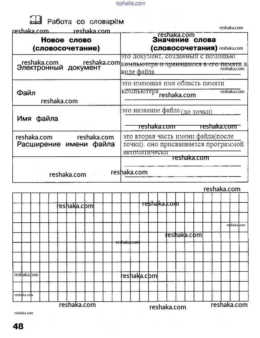 Представляем вам сборники по Информатике, с готовыми ответами к Рабочей тетради Матвеева школьной программы для учеников второй класса. Это не просто гдз с ответом, а с подсказками, как верно решить §17. Электронный документ и файл Часть 2. Страницы стр. 48. Проверяй домашку с умом и получай высший балл!