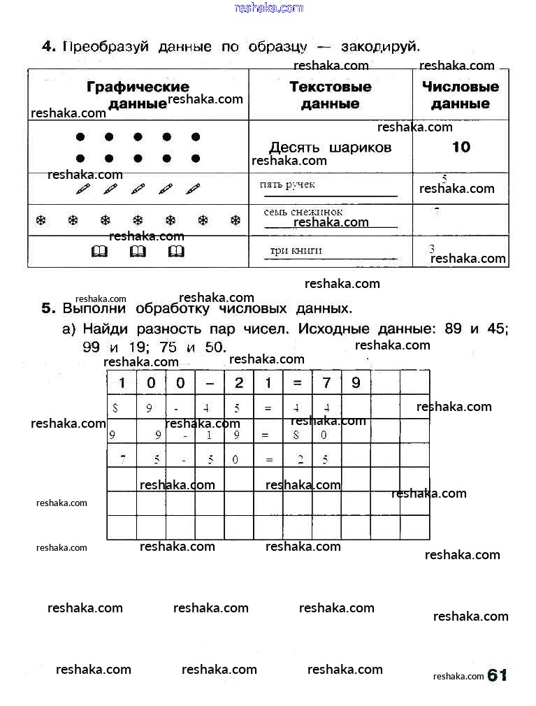 Решака - онлайн ответы Информатика Матвеева, Челак за 3 класс Рабочая тетрадь ФГОС 2017 - 61