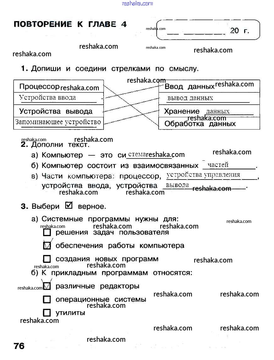 Решака - онлайн ответы Информатика Матвеева, Челак за 3 класс Рабочая тетрадь ФГОС 2017 - 76
