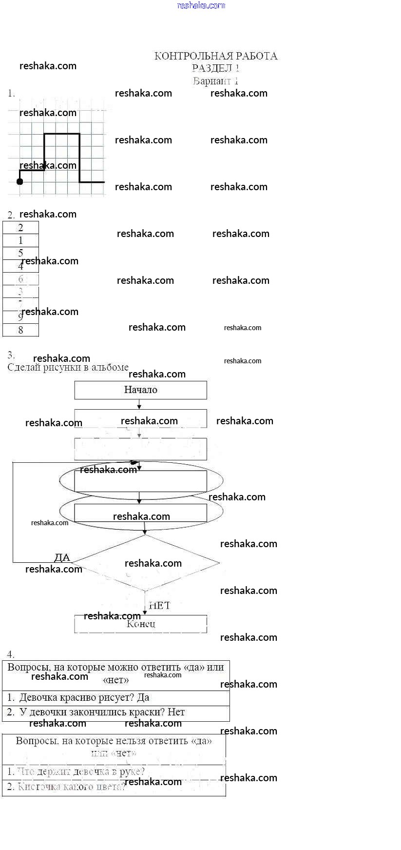 Решака - онлайн ответы Информатика Горячев, Горина за 4 класс Учебник 2010 - Вариант 1