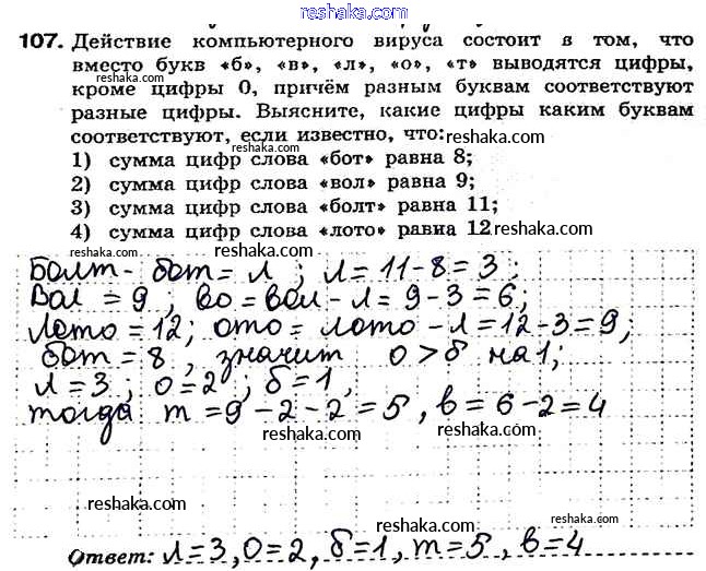 Решака - онлайн ответы Информатика Босова за 7 класс Рабочая тетрадь ФГОС 2018 - 107