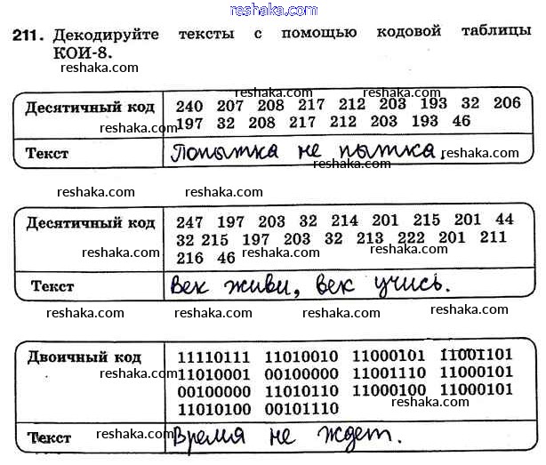 Решака - онлайн ответы Информатика Босова за 7 класс Рабочая тетрадь ФГОС 2018 - 211