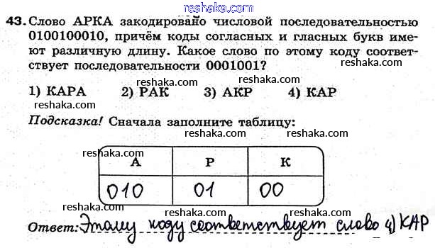 Решака - онлайн ответы Информатика Босова за 7 класс Рабочая тетрадь ФГОС 2018 - 43