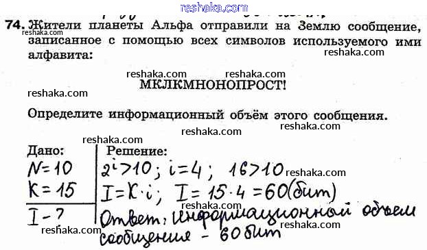 Решака - онлайн ответы Информатика Босова за 7 класс Рабочая тетрадь ФГОС 2018 - 74