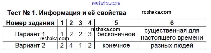 Решака - онлайн ответы Информатика Масленикова за 7 класс Контрольно-измерительные материалы (КИМ) ФГОС 2017 - Тест №1. Информация и её свойства