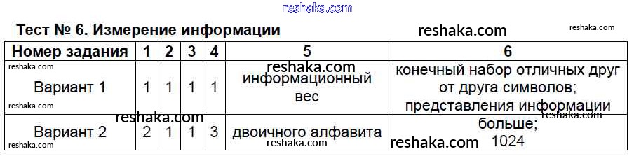 Решака - онлайн ответы Информатика Масленикова за 7 класс Контрольно-измерительные материалы (КИМ) ФГОС 2017 - Тест №6. Измерение информации